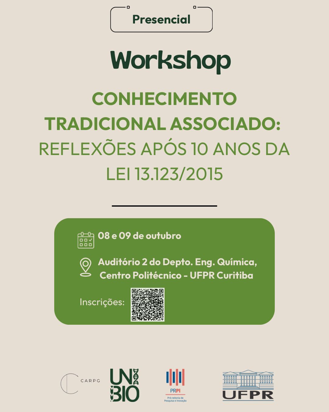 ![]() WORKSHOP Em outubro, a UFPR receberá o workshop “Conhecimento Tradicional Associado: reflexões após 10 anos da Lei 13.123/2015”, voltado a realizar a discussão sobre os avanços e desafios da Lei 13.123. O evento será realizado no Centro Politécnico da UFPR, no Auditório II do Departamento de Engenharia Química. | ![]() EVENTO Nos dias 11 e 12 de setembro será realizado o Simpósio Comemorativo de 60 anos do Programa de Pós-Graduação em Ciências-Bioquímica. O evento celebra as contribuições científicas de um dos PPGs em Bioquímica mais antigos do país. O evento será aberto ao público e ocorrerá no Setor de Ciências Biológicas da UFPR (inscrições encerradas). |