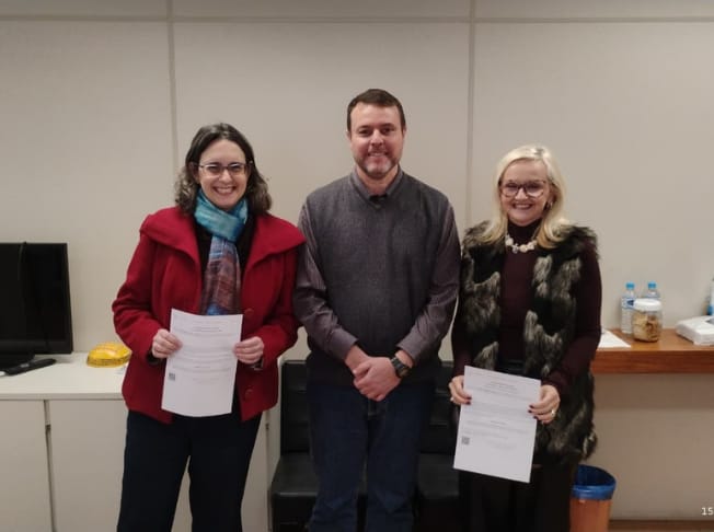 ![]() | NOVA COORDENAÇÃO NA PÓS No dia 15 de agosto, as professoras Patricia do Rocio Dalzoto (Coordenadora) e Adriana Frohlich Mercadante (Vice-coordenadora) assinaram o termo de posse para mandato de dois anos à frente do programa Mestrado Profissional em Biologia para Ensino Médio - PROFBIO. Desejamos sucesso à nova dupla! |